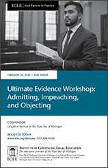 Plus, all attendees receive ICLE’s Michigan Rules of Evidence and Trial Objections at a Glance—a laminated chart for quick courtroom access to every rule of evidence and authority for common objections. A $50 value!