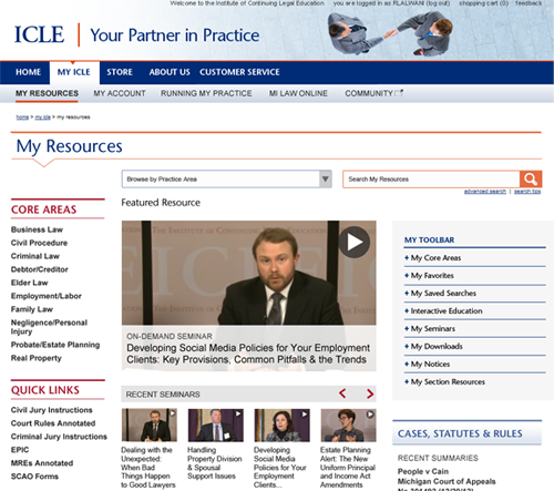 | COMING SOON! ICLE's Website—New Look, New Functionality Partnership Transition FAQ Web Improvements—Coming August–December You'll see a fresh new look and improved functionality while still being able to access, search, and browse all your ICLE resources as you do now. When you log on to the My Resources area in August you'll begin to benefit from the improvements below, with enhancements continuing to roll out through December. MY RESOURCES