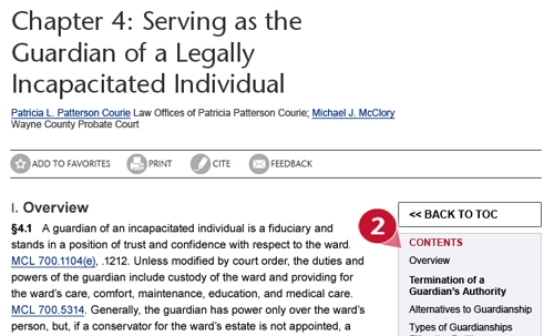 ICLE content pages—redesigned to be easier to use. Use the icons to add the page to your favorites, track what's new, and more (1). Navigate easily through topics with the clickable contents menus (2). ![]() ![]() |