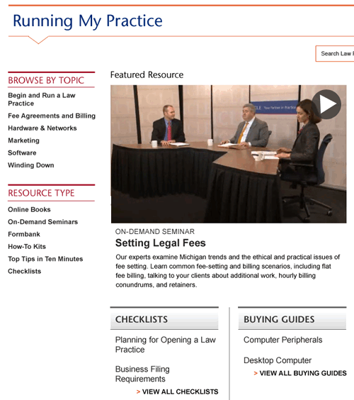 NEW! "Running My Practice" area—FREE to ICLE Partners! This service includes practice management and technology resources with checklists, buying guides, and the ICLE Tech Blog.
